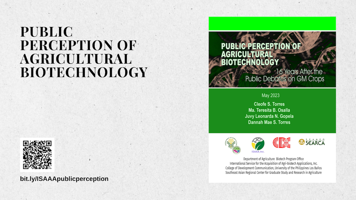 Agricultural biotechnology is a multifaceted science whose rapid evolution and often-contentious nature draw in diverse stakeholders with varying viewpoints. Due to this complexity, ISAAA prioritizes communication research to ensure that reliable data guide its biotech communication initiatives. When such information is not available, ISAAA proactively conducts its own research to establish the required evidence. This article summarizes the communication research initiatives of ISAAA.
