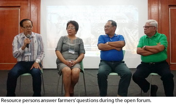The highlight of the event was the presentation of the Joint Department Circular to the farmers. Ms. Julieta Fe Estacio, Head Secretariat of the National Committee on Biosafety of the Philippines (NCBP), and Ms. Merle Palacpac, Chief of the Plant Quarantine Service of the Bureau of Plant Industry discussed the new regulatory system for GM crops in the Philippines to the attendees.