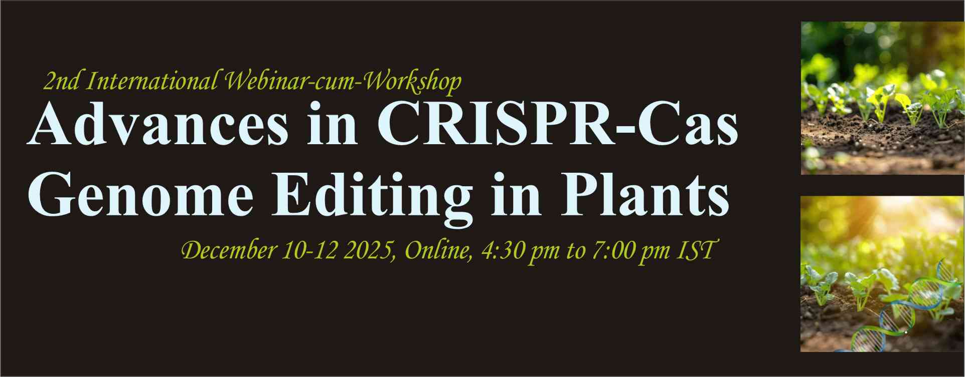 The 2nd International Workshop-cum-Webinar on ‘Advances in CRISPR-Cas Genome Editing in Plants' scheduled on December 10-12, 2025, will provide a comprehensive exploration of this cutting-edge field. The online 3-day evening sessions will be held from 4:30 pm to 7:00 pm; IST 1.00 pm to 3.30 pm CET.